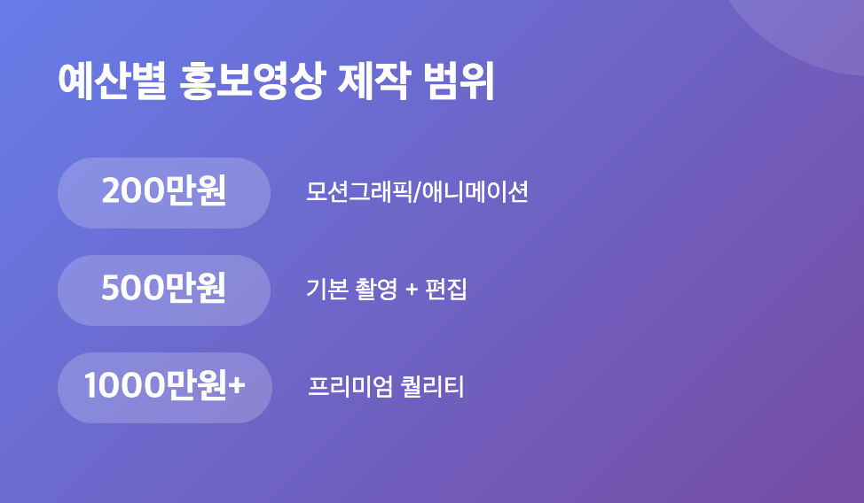 예산별 제작 가능한 홍보영상 퀄리티 비교